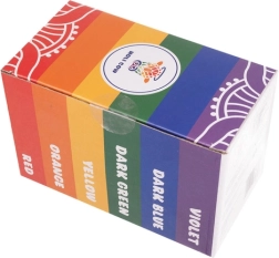 Im Paket finden Sie sechs kräftige Farbtöne: Weiß, Orange, Gelb, Grün, Blau und Violett. Das Set ist eine ausgezeichnete Wahl für das Holi-Fest, Mottopartys, Teambuildings und Promo-Events. Das Pulver ist auswaschbar und lässt sich leicht aus den meisten Textilien entfernen.