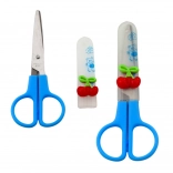 Die Schere hat abgerundete Spitzen und einen Schutzkappe für maximale Sicherheit bei der Verwendung durch Kinder.