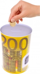 Diese effektive Metallsparbüchse in Form einer Dose ist mit einem 200-Euro-Schein bedruckt. Perfekt für alle, die mit Freude und Stil sparen möchten. Dank der realistischen Grafik mit markanten Details und einer robusten, zylindrischen Konstruktion erfüllt sie nicht nur eine praktische Funktion, sondern ist auch ein ästhetisches Element – sie kann ein dekoratives Element auf dem Tisch, Regal oder der Kommode sein. Aus widerstandsfähigem Metall hergestellt, garantiert sie Widerstandsfähigkeit gegen tägliche Nutzung, kleine Stöße und mechanische Schäden, was zu ihrer langen Lebensdauer beiträgt.