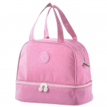 Das untere Fach ist sehr geräumig und fasst problemlos Essensboxen, Obst, Getränke oder thermische Flaschen. Die obere Tasche ist für kleine Zubehörteile und Kleinigkeiten wie Riegel, Joghurts oder Servietten vorgesehen, damit der Inhalt geordnet und leicht zugänglich ist.