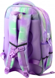 Der Schulrucksack in pastellfarbenen Tönen von Blau, Lila und Rosa ist die ideale Wahl für Kinder, die Funktionalität mit stilvollem Aussehen kombinieren möchten. Der Rucksack bietet zwei geräumige Fächer, das Hauptfach ist mit einem praktischen Trenner für einfache Organisation von Büchern und Heften ausgestattet.