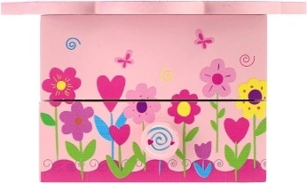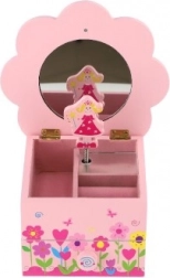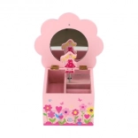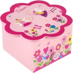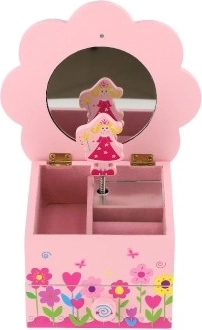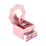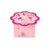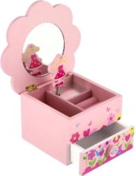 Das bezaubernde Holz-Schmuckkästchen in Rosa begeistert jede kleine Märchenliebhaberin. Der blumenförmige Deckel verbirgt einen Spiegel und beim Öffnen startet ein Musikmechanismus, der jedes Schmücken in ein magisches Ritual verwandelt. Die Innenaufteilung mit Fächern und die untere Schublade helfen, Ringe, Armbänder, Perlen und kleine Schätze ordentlich aufzubewahren.