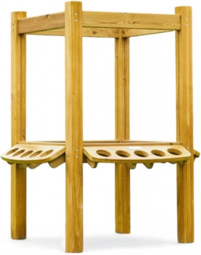 Das spezielle Design ermöglicht eine einfache Aufstellung von Farben und Wasserbehältern, was sie zum perfekten Werkzeug für die Entwicklung des Kindes macht. Die Einrichtungsstationen dieser Tafel sind aus langlebigen Materialien gefertigt, die gegen UV-Strahlung, Schimmel und Fäulnis resistent sind, was sie ideal für den Außenbereich macht.