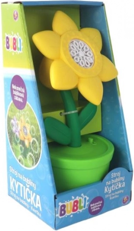 Gelbe Blasenmaschine in Blumenform für endlosen Spaß. Einfache Bedienung, ideal für Outdoor-Veranstaltungen.