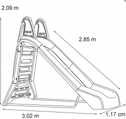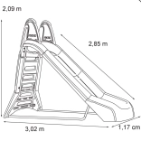 Abmessungen der Rutsche: 209 x 302 x 117 cm. Verpackungsmaße: 143 x 52 x 74.5 cm. Geeignet für Kinder ab 3 Jahren. Gewicht der Rutsche: 38 kg.