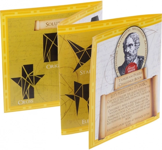 Wir präsentieren Ihnen ein anspruchsvolles und unterhaltsames Rätsel, das Archimedes, einem der angesehensten Denker der Antike, huldigt. Dieses Puzzle enthält 14 Holzstücke, die Sie herausnehmen und danach wieder zu einem Quadrat zusammensetzen müssen. Die eigentliche Herausforderung liegt jedoch in der Vielzahl der Möglichkeiten, die Teile ohne Drehen anzuordnen. Nach dem ursprünglichen Design von Archimedes ist dieser Rätseltyp seit über 2.000 Jahren bekannt und gilt als eines der ältesten erhaltenen Rätsel. Neben der Hauptaufgabe können Sie in der beiliegenden Broschüre 12 weitere Formenaufgaben lösen, die Ihre Vorstellungskraft auf die nächste Stufe heben.