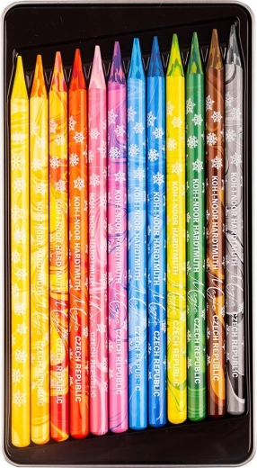 Die Buntstifte sind in einer stilvollen Blechdose verpackt, die 12 Stück dieses einzigartigen Werkzeugs für alle kreativen Künstler enthält.