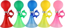 Die praktische Fahrradhupe mit klassischem Gummiballon sorgt dafür, dass Ihr Kind unterwegs gut hörbar ist. Dank der mitgelieferten Schelle lässt sie sich ohne Spezialwerkzeug leicht an den meisten Kinderlenkern montieren. Das leichte, farbenfrohe Design verleiht Fahrrad und Roller einen verspielten Look.
