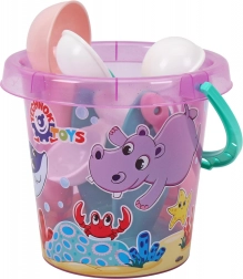 Leichter, robuster Eimer mit Aufdruck von Meerestieren zum Tragen von Wasser und Sand. Ideal in der Größe für kleine Kinderhände.