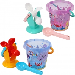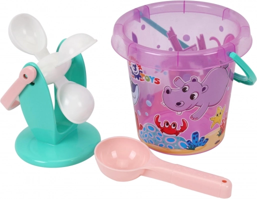 Dieses kompakte Sand- und Wasserset bietet Kindern stundenlangen Spiel- und Lernspaß. Der transparente Eimer mit Meerestiermotiv ist ideal zum Tragen von Wasser oder Sand und die Wasser-/Sandmühle setzt sich beim Eingießen von Wasser oder Durchrieseln von Sand in Bewegung – das motiviert Kinder zum Entdecken und Experimentieren.