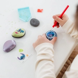Dieses unterhaltsame Kreativset sorgt für stundenlanges Bastelvergnügen. Mit Rubbel-Aufklebern und ca. 400 dekorativen Steinchen gestalten Sie mühelos einzigartige Steine, inspiriert vom beliebten Motiv Stitch. Sind die Steine aus der Packung aufgebraucht, können Sie mit Fundstücken aus der Natur weitermachen.