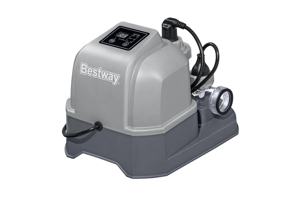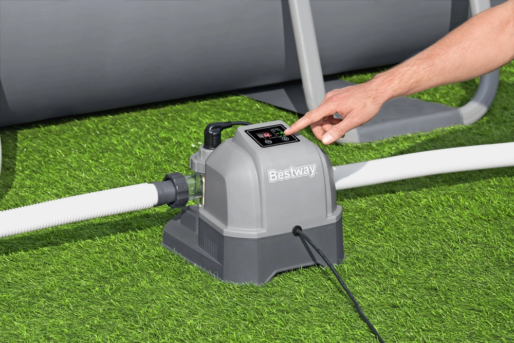 Der Bestway Chlor-Generator bietet eine Lösung für diejenigen, die das Wasser im Pool sauber halten wollen, ohne herkömmliches Chlor zu verwenden. Das Gerät verwandelt Salz in natürliches Chlor, was das Wasser effektiv reinigt und Bakterien abtötet. Das Baden ist komfortabler, ohne Reizung der Augen und Haut.