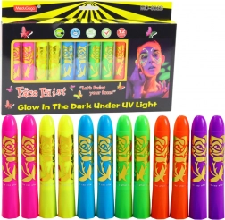 Das Set enthält 12 Stifte in intensiven, fluoreszierenden Farben – jeweils zwei von jeder Farbe, was das Teilen mit Geschwistern oder Freunden ermöglicht. Die Stifte eignen sich perfekt für den täglichen Spaß, Themenpartys, Geburtstage, Karneval, Festivals und Halloween.