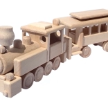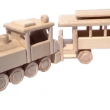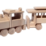 Der Zug ist aus massivem Buchenholz gefertigt und ausschließlich mit Wachs und Politur behandelt. Er bewahrt die authentische Holzmaserung, ist schonend und sicher für Kinderhände.