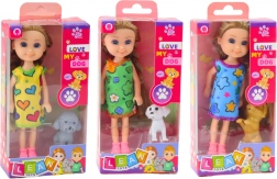 Machen Sie Ihren Kindern mit einem Set Freude, in dem eine Puppe mit einer Größe von 14,5 cm in bunter Kleidung alle Blicke auf sich zieht und der Figur Charakter verleiht. Die Hundefigur begleitet die Puppe im Spiel, was es ermöglicht, Aktivitäten wie gemeinsame Spaziergänge, Füttern, Pflege oder Spielen im Park nachzustellen.
