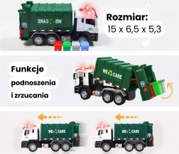 Realistische Funktionen und lehrreiche Ergänzungen machen dieses Müllfahrzeug nicht nur zu einem beliebten Spielzeug, sondern auch zu einem nützlichen Werkzeug zur Vermittlung umweltfreundlicher Gewohnheiten im Alltag.
