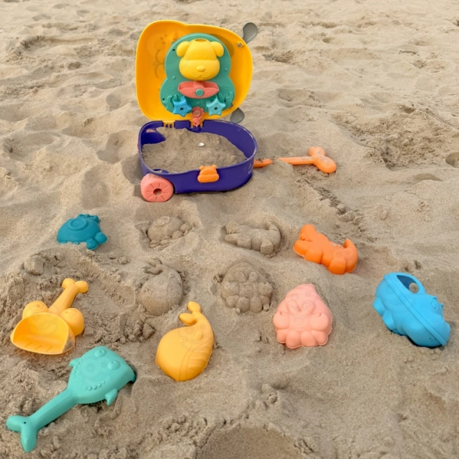 Dieser tragbare Koffer verwandelt sich in einen kleinen Wasser-Sandkasten, der Kinder zu Hause, im Garten oder am Strand begeistert. Dank des umfangreichen Zubehörs genießen Kinder kreatives Gestalten mit Sand und zugleich das Entdecken von Wassereffekten. Das Spielzeug fördert die Feinmotorik, die Kreativität und die sensorische Wahrnehmung.