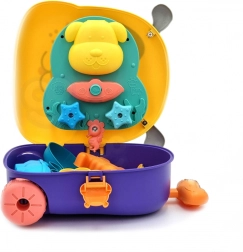 Dieser tragbare Koffer verwandelt sich in einen kleinen Wasser-Sandkasten, der Kinder zu Hause, im Garten oder am Strand begeistert. Dank des umfangreichen Zubehörs genießen Kinder kreatives Gestalten mit Sand und zugleich das Entdecken von Wassereffekten. Das Spielzeug fördert die Feinmotorik, die Kreativität und die sensorische Wahrnehmung.