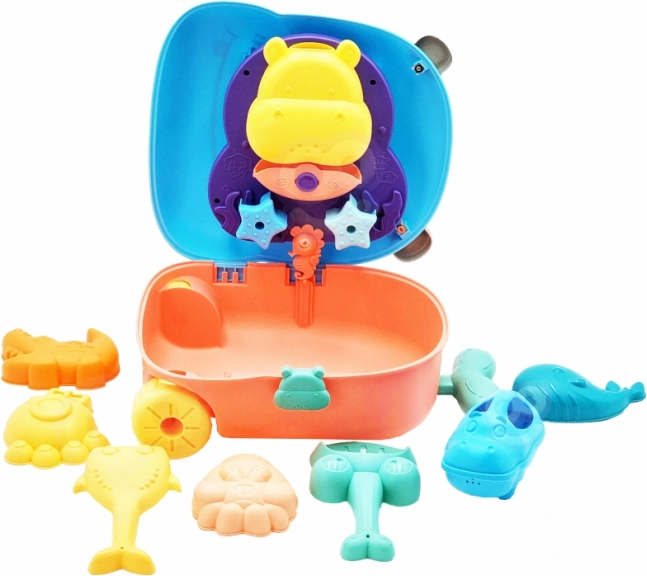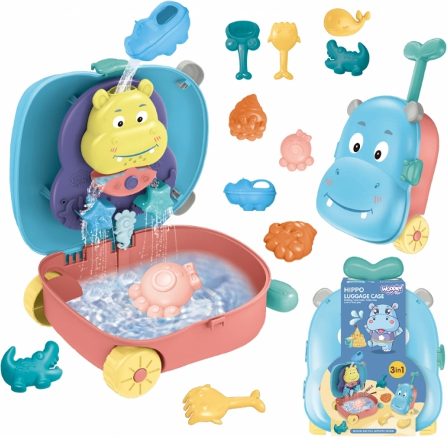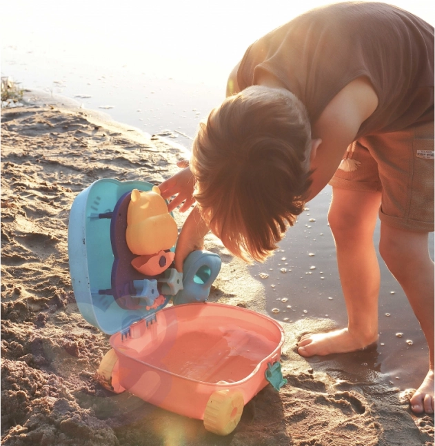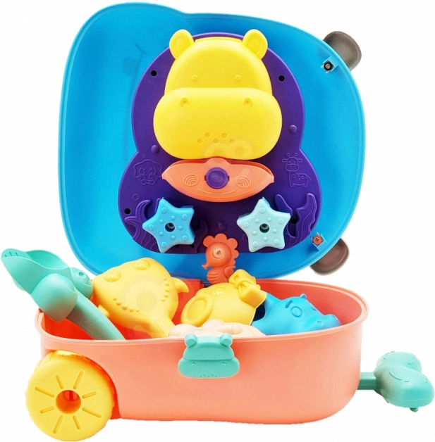 Entdecken Sie Spaß am Strand und zu Hause mit diesem cleveren 3-in-1-Set. Der niedliche Koffer in Nilpferdform verwandelt sich im Handumdrehen in einen Tisch für Wasser- und Sandspiele, voll mit farbigen Förmchen, Rädern und Zahnradgetrieben. Dank der Räder und des Griffs können Kinder ihre Ausrüstung ganz einfach überallhin mitnehmen – an den Strand, in den Garten oder auf den Spielplatz.