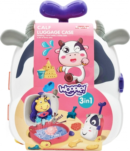 Der WOOPIE 3-in-1 Kinderkoffer „Kuh“ ist ein praktisches und unterhaltsames Spielzeug für drinnen und draußen. Dank leiser Räder und bequemem Griff nimmt das Kind alles Nötige für Sand und Wasser leicht mit. Im Set findest du vollständiges Zubehör für Sandbauten und Wasserexperimente, die Feinmotorik, Kreativität und Sinneswahrnehmung fördern.