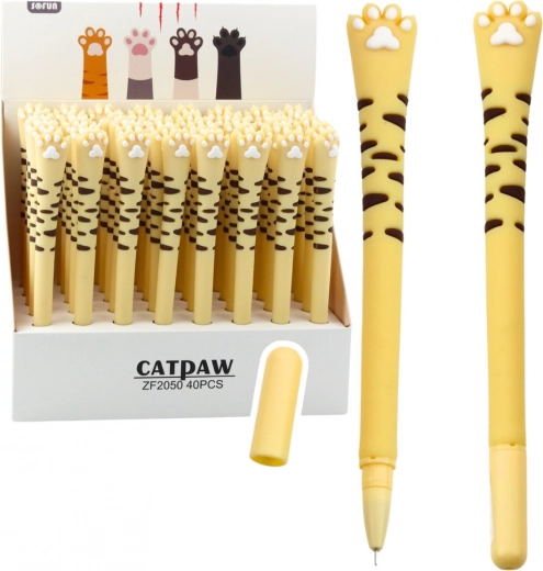 Der Gelstift mit Katzenpfote in der gelben Version mit braunen Streifen ist die ideale Kombination aus Komfort und lustigem Design. Sein flexibler Körper aus weichem Gummi sorgt für angenehme Handhabung, und dank der niedlichen Pfote in Form einer Katzenpfote mit Vorsprüngen wird ein dekoratives Element hinzugefügt. Die feinen Streifen im Tigerstil machen den Stift zu etwas Besonderem unter klassischen Büroartikeln.