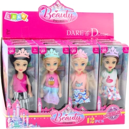 Die Mini Prinzessinnenpuppe mit bunten Kleidern und einer Plastikkrone zieht die Aufmerksamkeit auf sich und inspiriert zur Schaffung von Märchengeschichten. Jede Puppe hat bewegliche Gliedmaßen, was es leichter macht, sie in verschiedene Positionen zu bringen und dem Spiel Realismus zu verleihen. Sie eignet sich perfekt als einzelnes Spielzeug oder als Teil eines größeren Sets - wie einem Puppenhaus oder einem Prinzessinnenpalast.