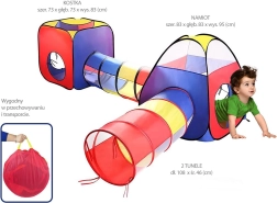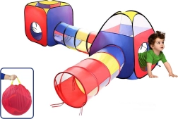 Dieses Set enthält zwei Würfelzelte und Tunnel in leuchtenden Farben - Rot, Blau und Gelb, die eine fröhliche und stimulierende Umgebung schaffen.