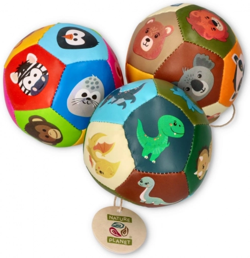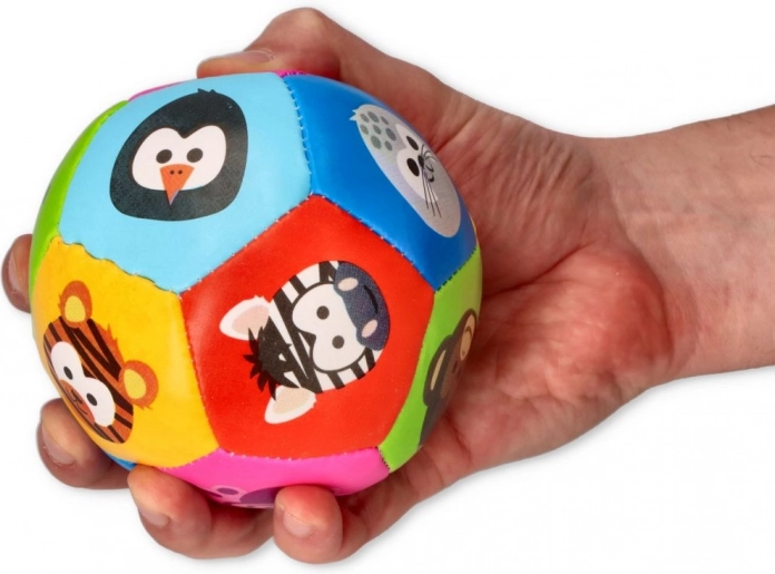 Bunter weicher Ball mit Tieren für Kleinkinder. Leicht, sicher, mit CE. Fördert Motorik und sensorische Entwicklung. Ideal zum Spielen zu Hause und im Kindergarten.