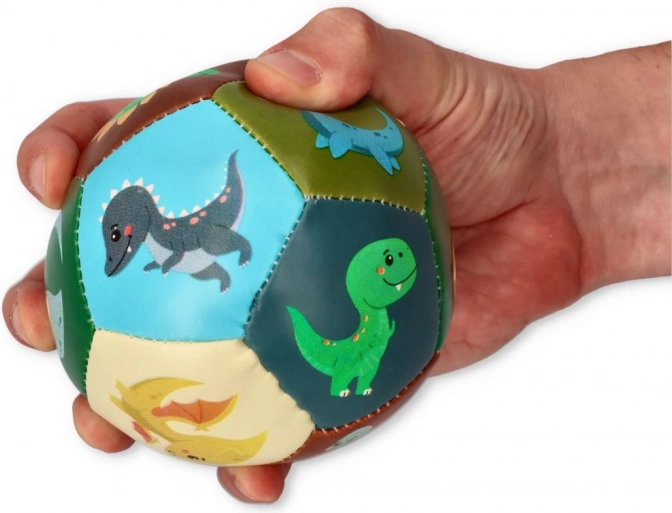 Dieser weiche Kinderball mit Dinosaurier-Motiven begeistert durch kräftige Farben und ein freundliches Design. Dank der leichten, nachgiebigen Konstruktion lässt er sich leicht fangen und drücken, was den Griff stärkt und sowohl Fein- als auch Grobmotorik fördert. Ideal für erste Wurf-, Fang- und Rollspiele.