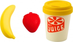 Zum Set gehören auch farbenfrohe Plastikfrüchte: Erdbeere, Banane und Limette sowie ein Cocktailbecher. Alle Teile sind sicher und passen perfekt in kleine Kinderhände.