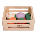 Dieser Korb mit Holzgemüse ist ideal für Kinder, die gerne Rollen in der Küche oder im Laden spielen, was ihre sozialen Fähigkeiten und Kreativität entwickelt. Jedes Teil ist aus hochwertigem Holz gefertigt, was Langlebigkeit und Sicherheit beim Spielen garantiert.
