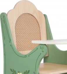 Der elegante Holzstuhl für Puppen ist eine hervorragende Ergänzung für das Spielen mit Puppen im klassischen Vintage-Stil. Mit Rattan-Geflecht auf der Rückenlehne bietet er einen authentischen Look und bringt einen natürlichen Akzent ins Spiel.