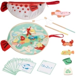 Dieses Holzset bietet 35 farbenfrohe Elemente, die mithilfe der Magnetangeln „gefangen“ werden. Kinder üben Geduld und Genauigkeit und lernen auf spielerische Weise Meerestiere kennen sowie Gegenstände zu sortieren. Bildungskarten bringen einfache Mathematikaufgaben und Wortschatz mit, sodass das Spiel natürlich Spaß und Lernen verbindet.