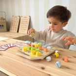 Kinder können mit Hilfe der Schrauben auf dem Holzbrett verschiedene Formen gestalten, was sowohl unterhaltsam als auch hilfreich für ihr Wachstum ist. Verbessert die Koordination, Konzentration und Handgelenk- und Handkraft. Musterkarten bieten eine Vielzahl von Herausforderungen, die Kinder ausprobieren können, und zusammen mit den Eltern können sie versuchen, die Muster auswendig aufzubauen. Diese Aktivität fördert auch das Farb- und Formenerkennung.