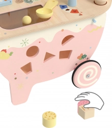 Wir präsentieren Ihnen die hölzerne Eisdiele 3 in 1 von Classic World, die ideal für Kinder ab 3 Jahren ist. Dieses multifunktionale Spielzeug dient nicht nur als Eisdiele, sondern auch als Sortierer, Labyrinth und Tafeltafel. Es ist aus langlebigen und sicheren Materialien hergestellt, mit Pastellfarben und dekorativen Drucken, die jeden kleinen Verkäufer ansprechen. Dank der reichhaltigen Auswahl an Eiscreme-Zubehör, einschließlich verschiedener Geschmäcker, Zubehör und Waffelhörnchen, können sich die Kinder voll und ganz in das Spiel eines Ladens oder einer Eisdiele vertiefen.