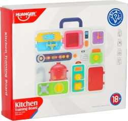 Montessori Manipulationsbrett mit Küchenelementen und lernender Uhr