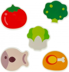 Das Brett enthält auch 5 bunte Magneten in Form von Lebensmitteln, die den Kindern helfen, verschiedene Arten von Essen kennenzulernen.