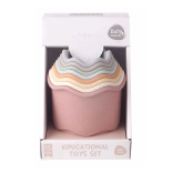 Genießen Sie den Spaß mit einem bunten Stapelturm aus Bechern, der jedes Kind unterhält. Die Packung enthält 8 Stück Becher mit Wellenmotiven, und der Turm erreicht eine Höhe von 40,8 cm.