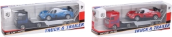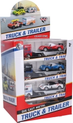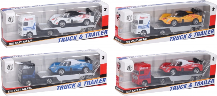 LKW mit Rennwagen ist eine hervorragende Wahl für Liebhaber von Autorennen. Dieses Metallspielzeugauto mit freien Rädern und kompakten Abmessungen bringt jedes Kinderspiel in Schwung.
