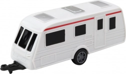 Das Set ist schön gestaltet, mit einem blauen Auto und einem weißen Wohnwagen mit roten Details für ein realistisches Aussehen und hervorragendes Spielen.