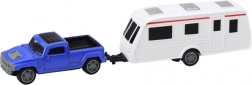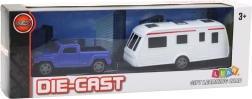Ein großartiges Set, das ein blaues Spielzeugauto mit einem Wohnwagen umfasst, ist perfekt für jedes Kind, das Autos und Fantasie liebt. Dank der Die-Cast-Technologie hat das Spielzeugauto eine robuste Metallkarosserie, die mit Plastikdetails ausgestattet ist.