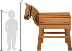 Das stabile und sichere Design ermöglicht ein einfaches Aufsitzen auch für die Kleinsten dank der integrierten Trittstufe. Die gespreizten Beine des Pferdes sorgen für Stabilität und Festigkeit, sodass die Kinder sicher und unbesorgt spielen können.