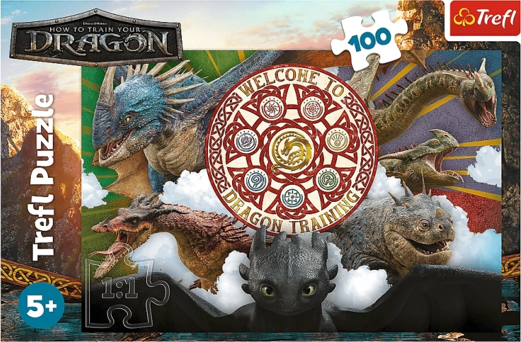 Kinderpuzzle der Marke Trefl mit einem Motiv aus dem Film Drachenzähmen leicht gemacht, enthält 100 Teile und ergibt nach dem Zusammensetzen ein Bild mit den Maßen 410 × 275 mm. Hergestellt aus hochwertigen und umweltfreundlichen Materialien; spezielles kalandriertes Papier reduziert Reflexionen und erleichtert das Puzzeln.