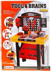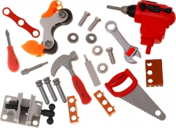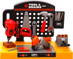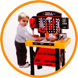 Ein großartiges Set für kleine Handwerker, das zur Erkundung der technischen Welt inspiriert. Im Set finden Sie neben der Haupt-Arbeitsbank auch Ablagefächer für Zubehör zur Aufbewahrung aller Werkzeuge. Das Kind kann sicher mit Hammer, Schraubendrehern, Französischschlüssel, Säge, Schrauben und Muttern, Feile, Bohrer und anderen Werkzeugen arbeiten.