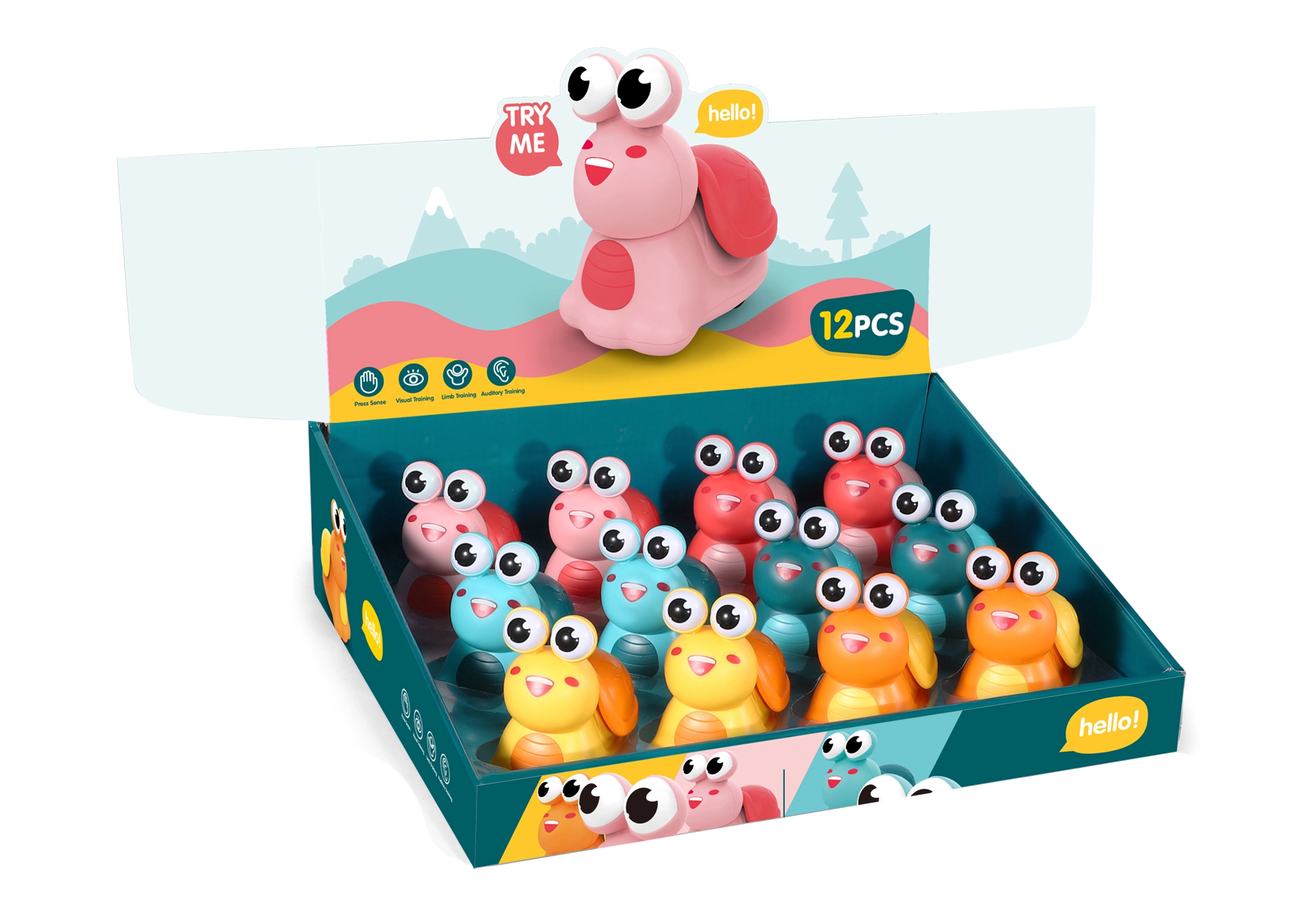 Die Schnecke ist so konzipiert, dass sie einfach für kleine Kinderhände zu bedienen ist. Einfach den Panzer drücken und beobachten, wie die Schnecke zum Leben erwacht und ihre Reise beginnt.
