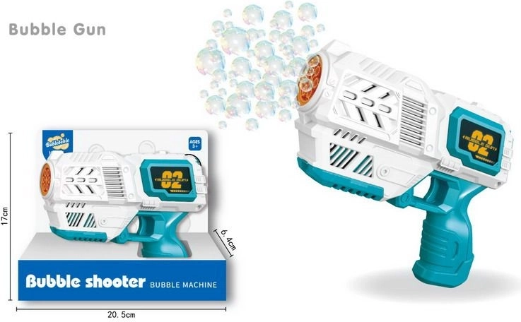 Diese Seifenblasenpistole ist ein hervorragendes Werkzeug, um lustige Momente voller Seifenblasen zu schaffen, die jedes Kind begeistern werden. Dank der praktischen Größe von 19,5 cm liegt sie gut in der Hand.