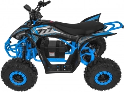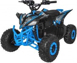 Das elektrische Quad DESERT STORM LIFT basiert auf einem stabilen, pulverbeschichteten Rahmen mit verstärkter hinterer Schwinge und hochwertigen, flexiblen Verkleidungsteilen. Der bürstenlose 800-W-Motor in Kombination mit dem 48 V 20 Ah Akku liefert gleichmäßigen Durchzug und energieeffizienten Betrieb. Die Höchstgeschwindigkeit beträgt bis zu 40 km/h, während das automatische Getriebe mit Rückwärtsgang (vorwärts/rückwärts) die Bedienung erleichtert.