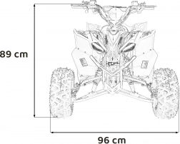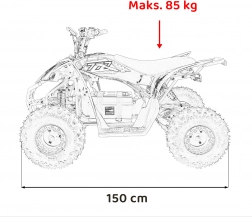 Für Komfort auf längeren Fahrten sorgen ein weicher, wasserabweisender Sitz mit den Maßen 61 × 29 cm und die praktische Schlüsselbedienung. Das Quad ist geeignet für Fahrer bis 85 kg, verfügt über eine Bodenfreiheit von 19 cm und Abmessungen von 150 × 96 × 89 cm und bietet damit Platz, Stabilität und die nötige Geländegängigkeit.