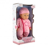 Mit der Puppe My Little Friend erlebt Ihr Kind stundenlangen kreativen Spielspaß. Diese Puppe begeistert nicht nur mit ihrem niedlichen Aussehen, sondern unterstützt auch die Entwicklung von sozialen Fähigkeiten, Kommunikation und Empathie. Die Puppe hat einen weichen Stoffkörper, was sie ideal für haptisches und emotionales Spiel macht. Der Kopf besteht aus strapazierfähigem Gummi, wodurch Form und Ausdruck erhalten bleiben.