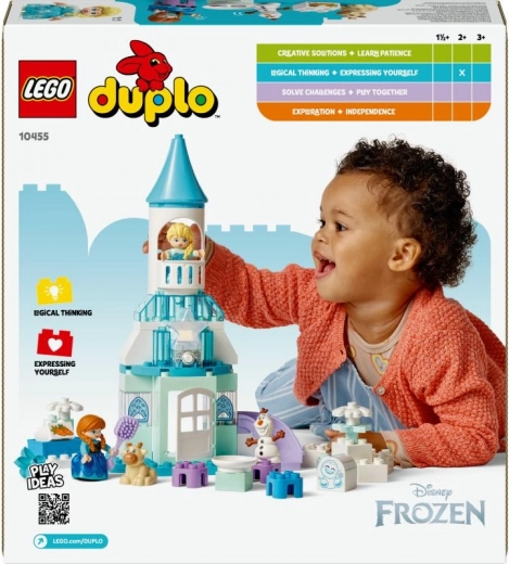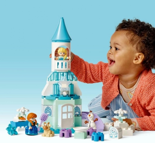 Entdecken Sie den bezaubernden Eispalast aus dem Film FROZEN, in dem Kinder Lieblingsszenen nachspielen und eigene Geschichten erfinden können. Die Bauplatte umfasst die Figuren Elsa, Anna, Olaf, den kleinen Sven und den Schneeriesen Pushka, wodurch das Rollenspiel noch spannender wird. Der Leuchtstein zaubert ein farbiges „Polarlicht“, während die zu öffnende Tür und die Textilröcke der Prinzessinnen die Sinne anregen.